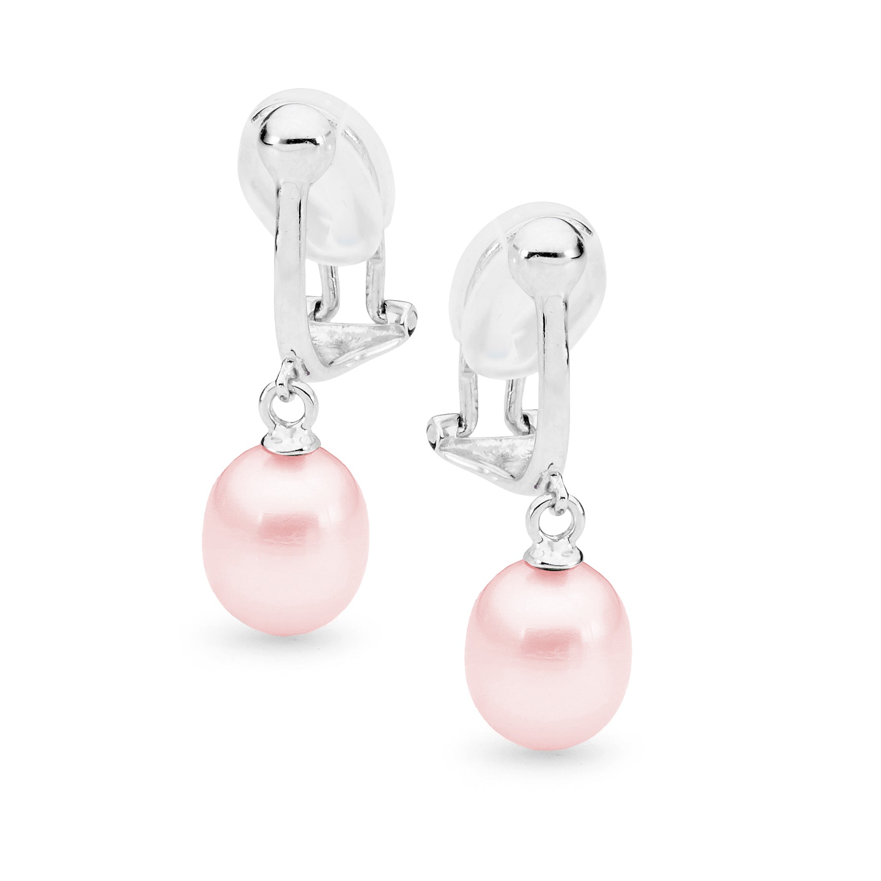 EMILY CLIP ONS - S/S pink drop 7.5-8mm FWP clip-on dangling earrings