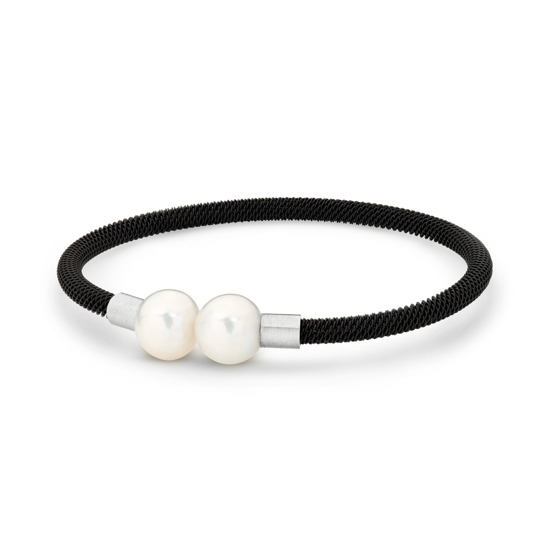 German stainless steel mesh black b'let with white near round 9mm Edison 17cm