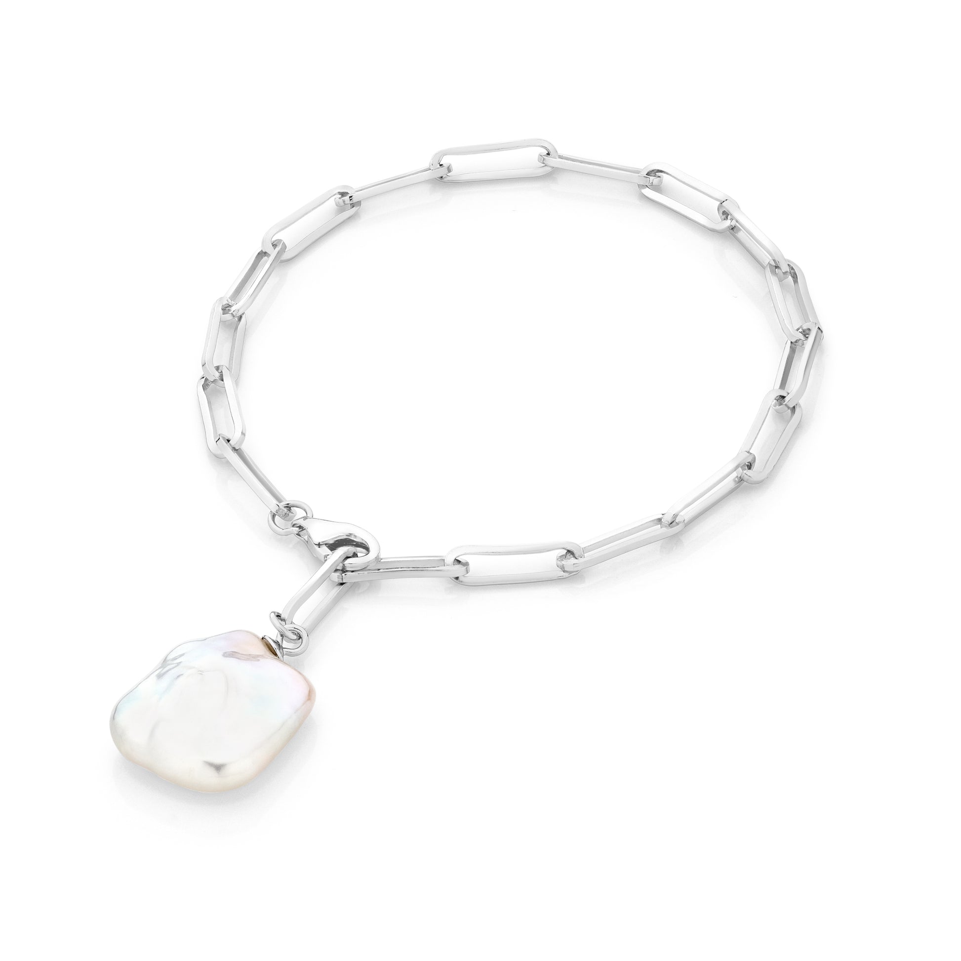 S/S paperclip chain with 14mm+ biwa FWP bracelet flexi. 19cm